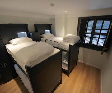 Se trata de una habitación privada con 5 camas individuales en literas y con baño privado. No dispone de TV.