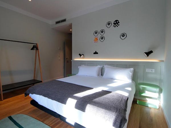This superior double room with double bed has a balcony and views of Plaza de San Diego, the square of the University of Alcalá de Henares. It has air conditioning/heating and a TV.